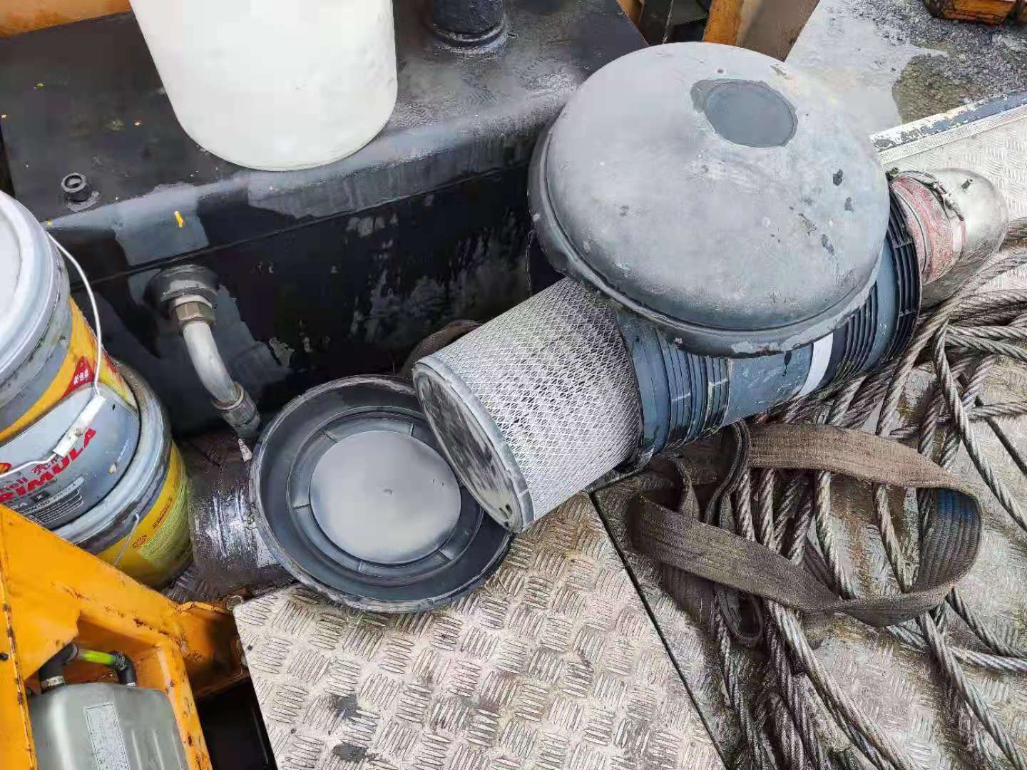 我公司人員到達后攜手另兩個公司的人員一起對三一起重機發動機進行了全面的檢查。
