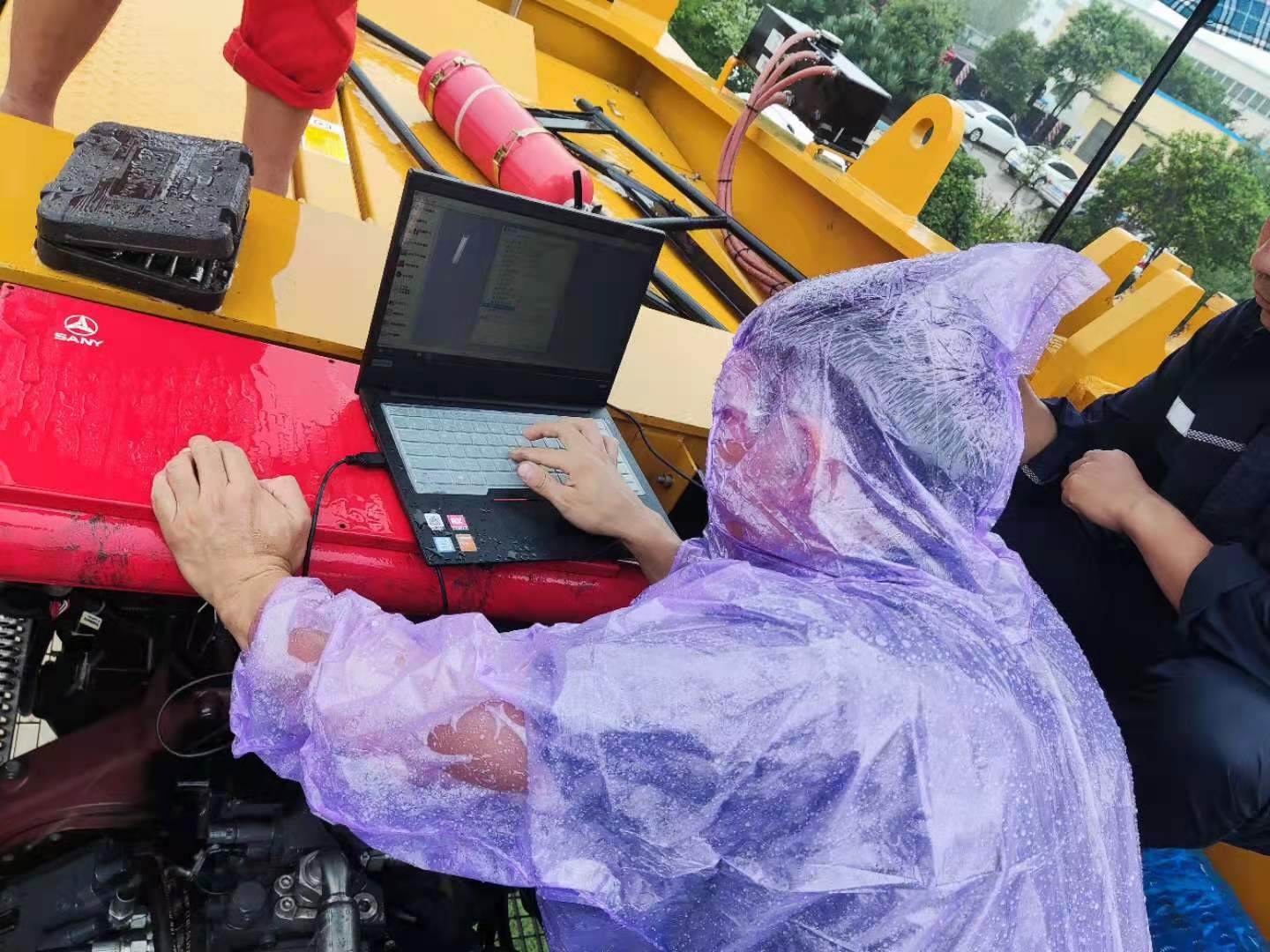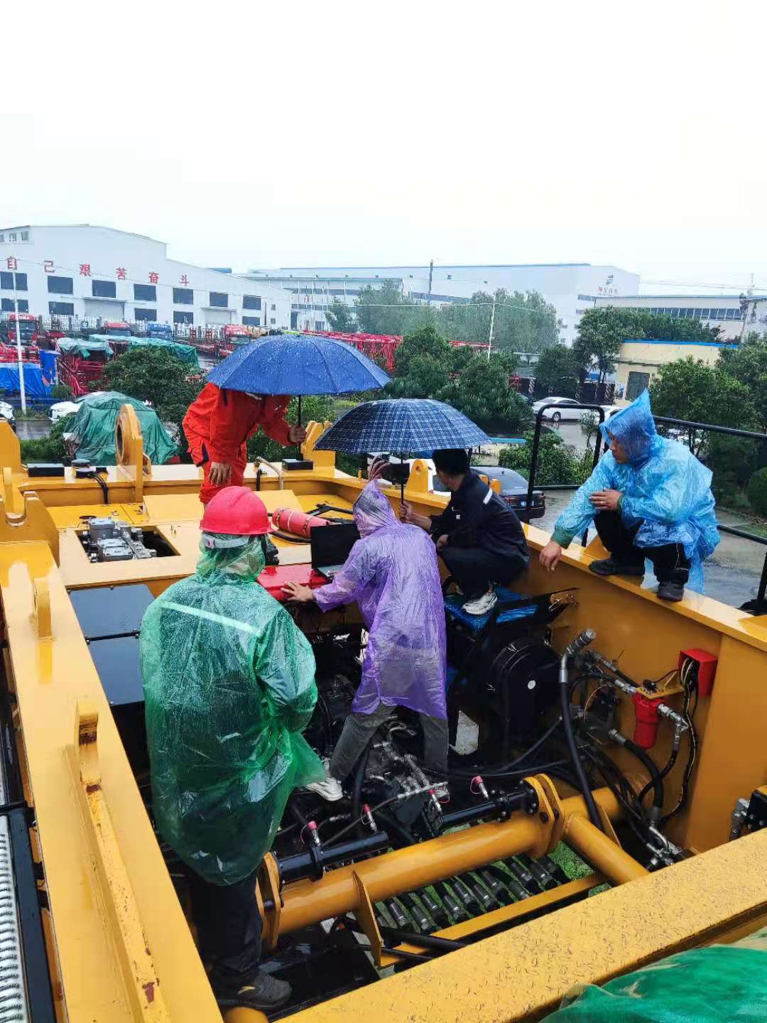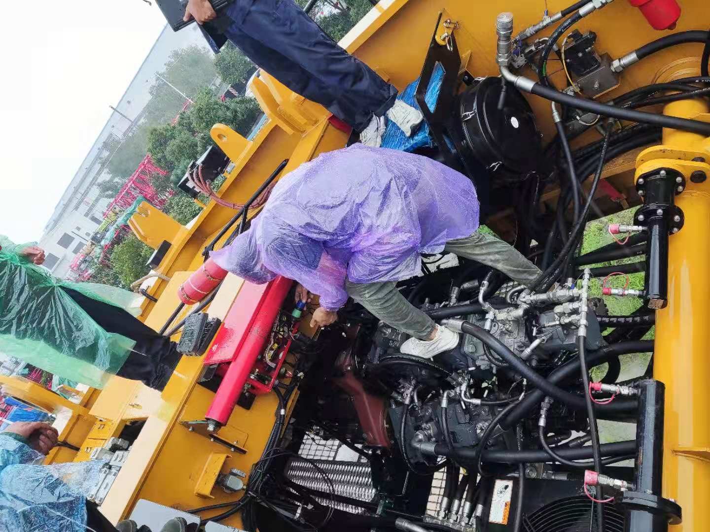 巡檢人員到達的時候,新鄉已經下起了雨,他們只能穿著雨衣,淋著雨對發動機進行檢查